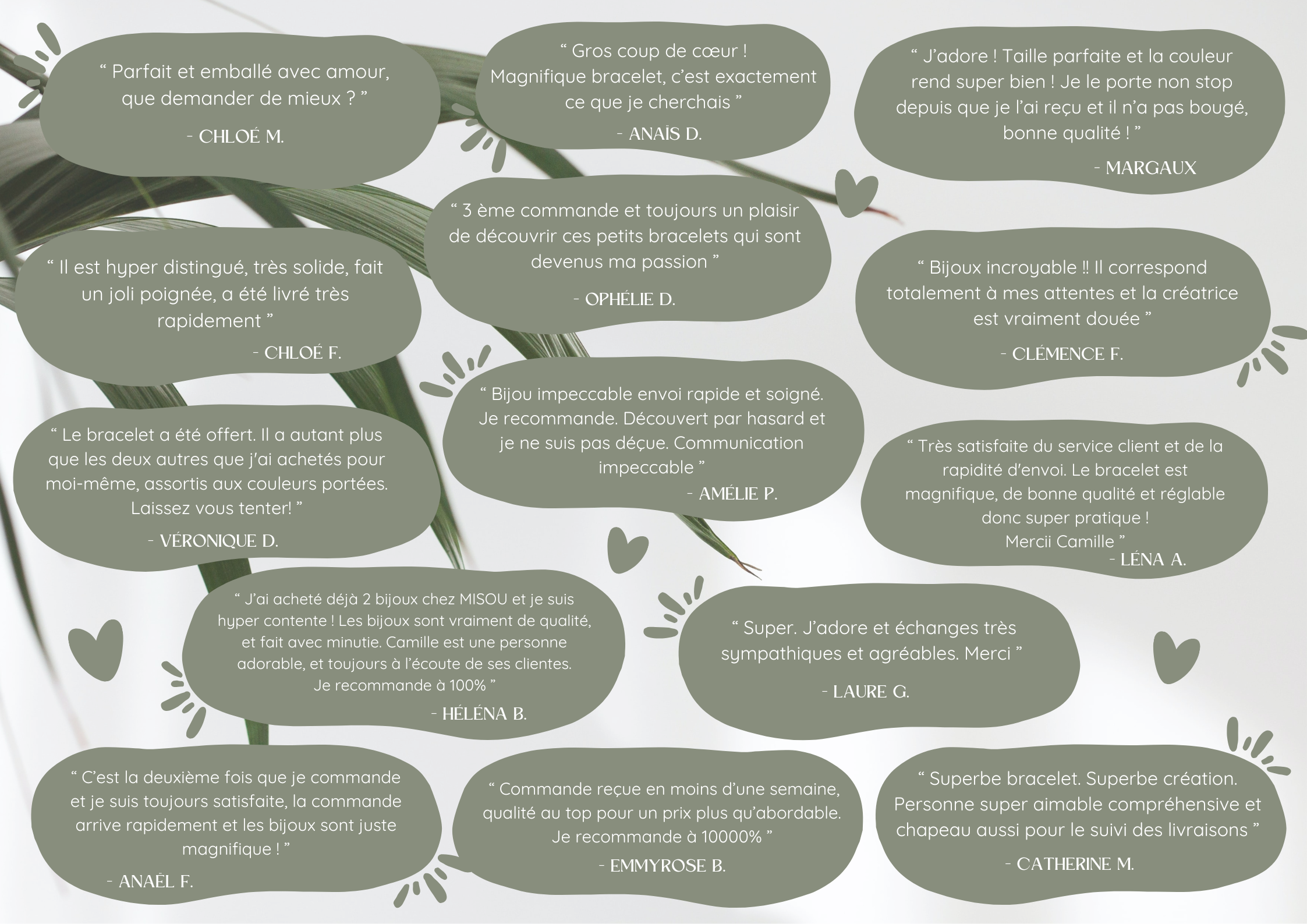 Vos avis nous inspirent chaque jour à continuer de créer des bijoux uniques, pensés pour sublimer chaque instant. 💖 Un grand merci pour votre confiance et votre soutien.