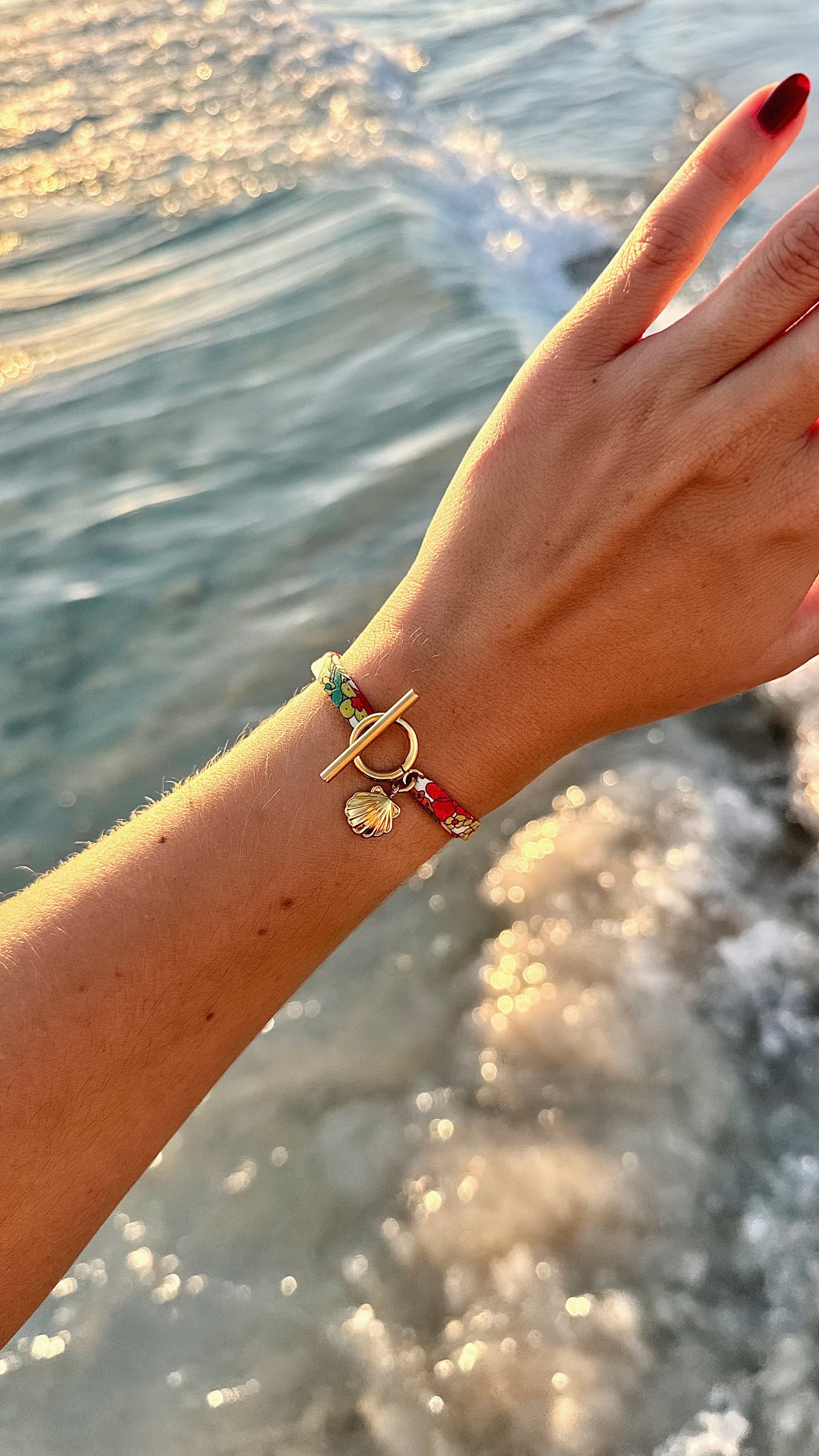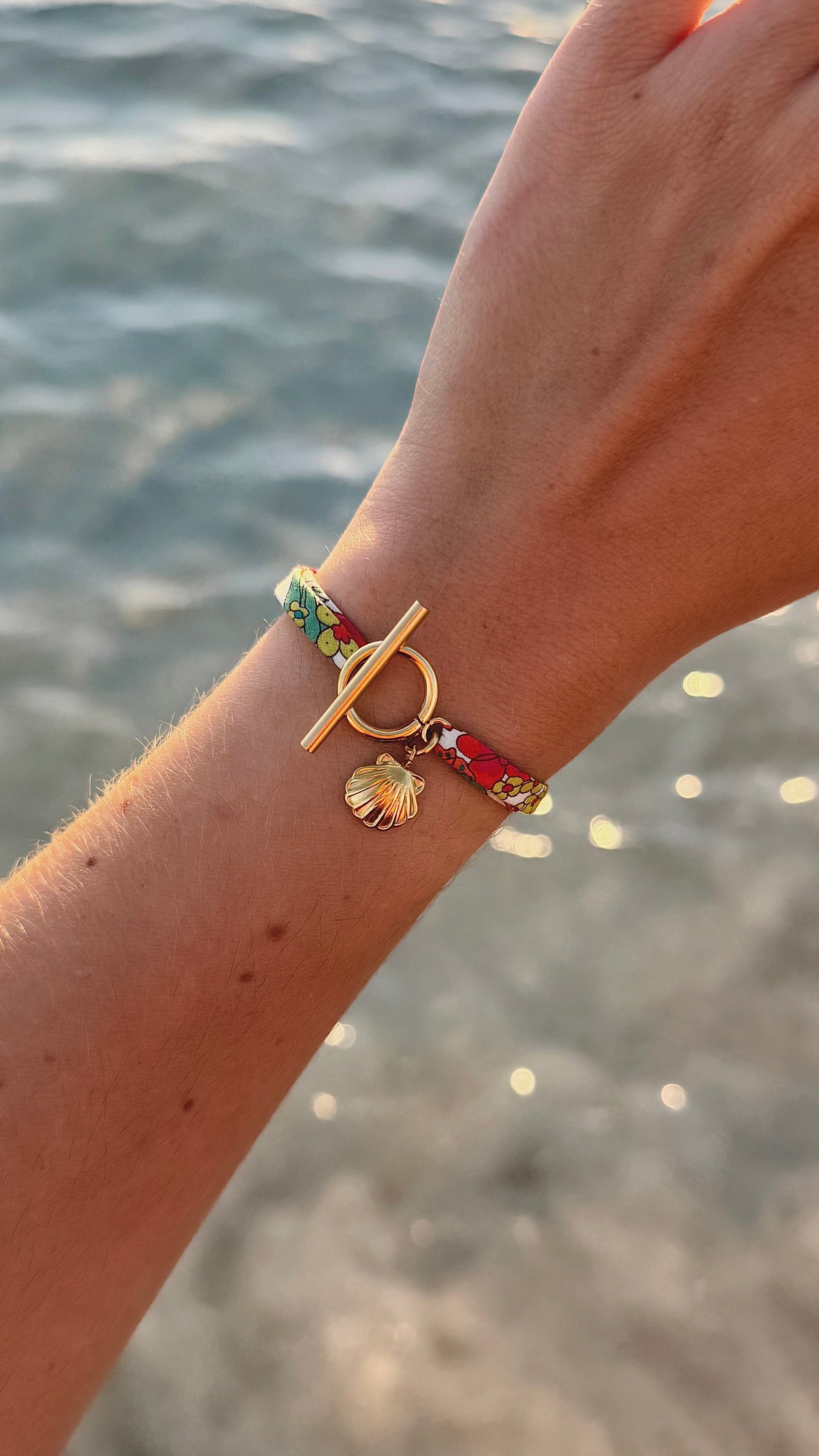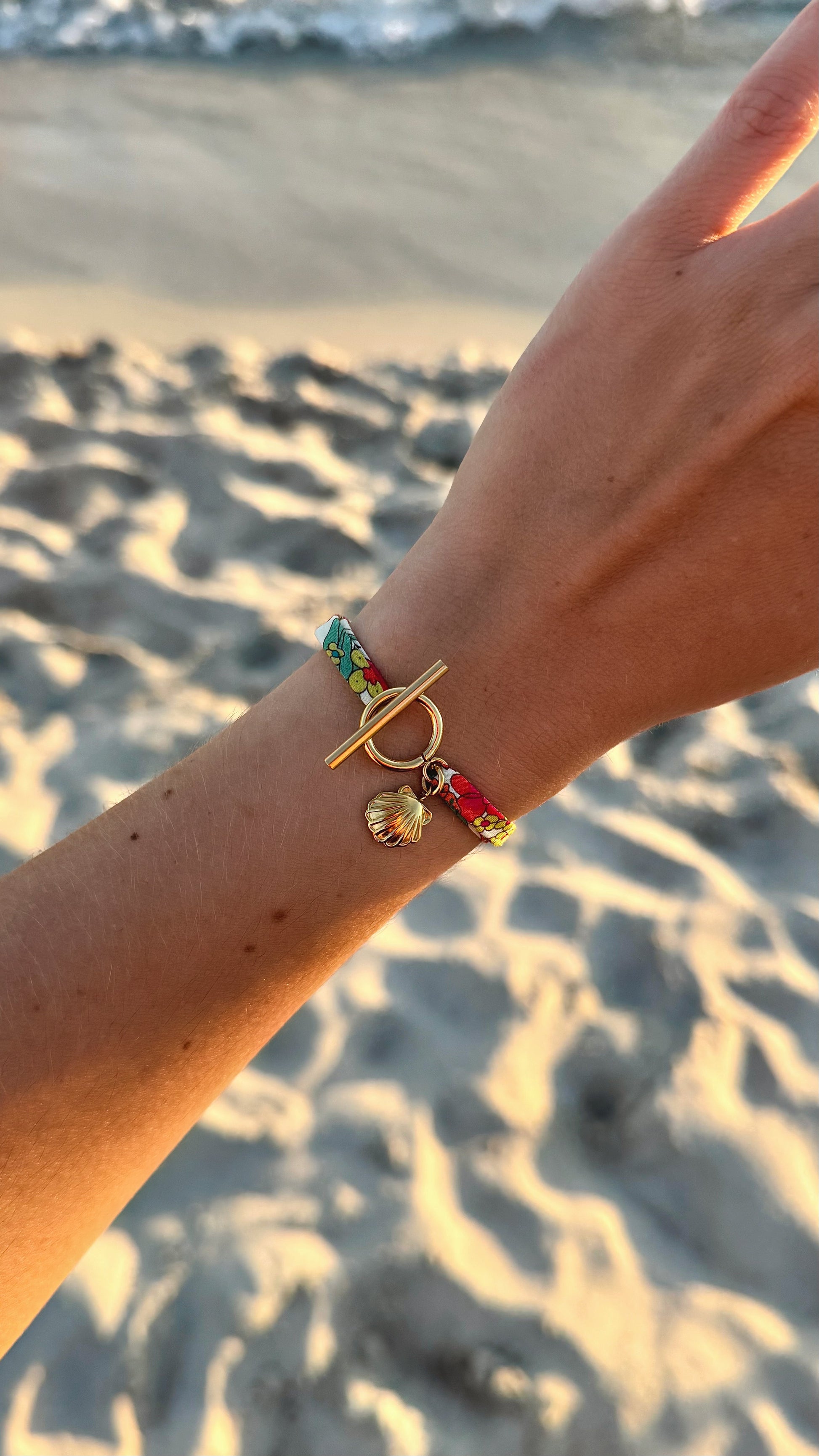 Le bracelet est réglable grâce aux nœuds coulissants.