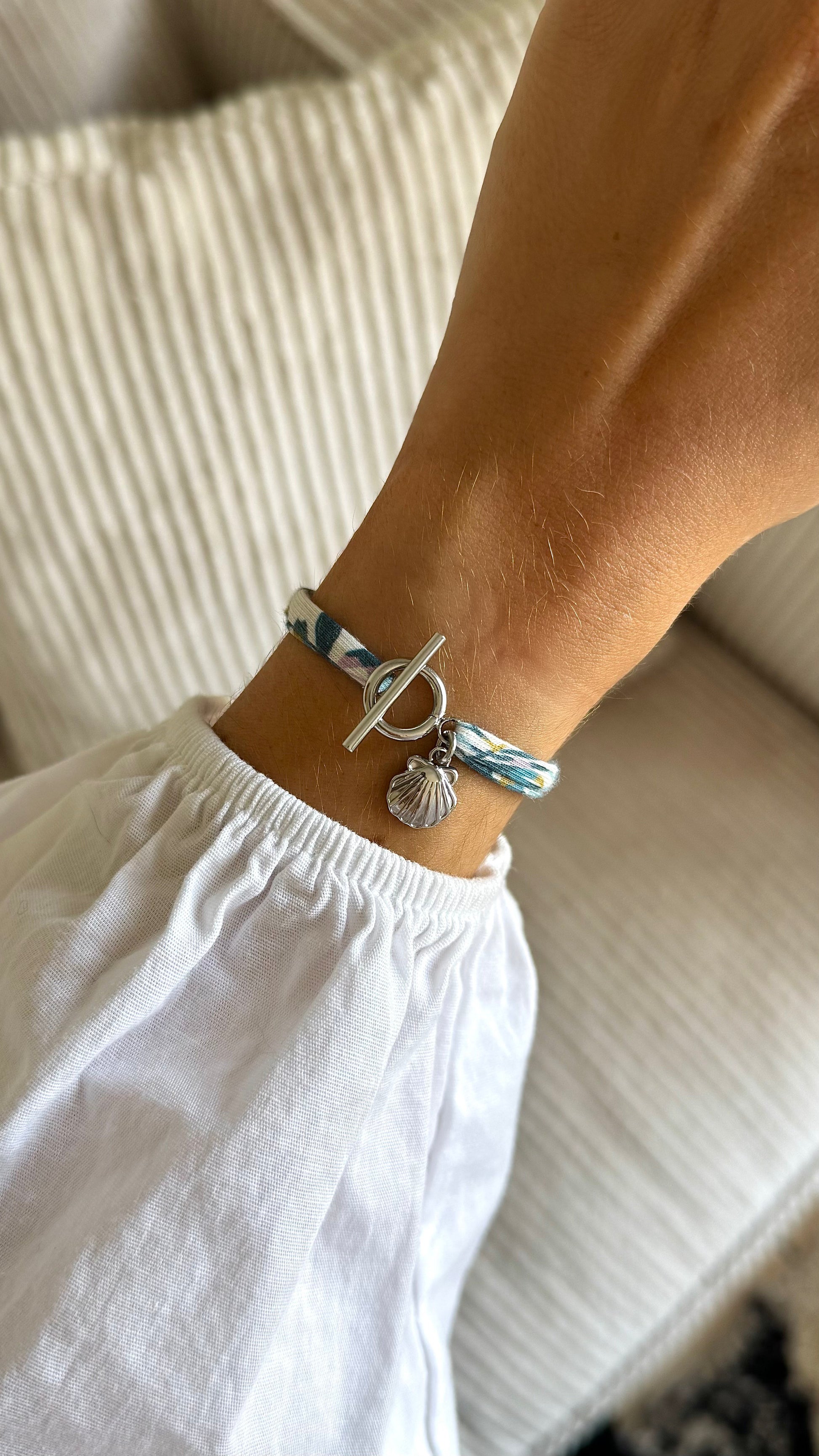 Le bracelet « PAOLA » est un bracelet avec un fermoir en acier inoxydable et une pampille en forme de coquillage, elle aussi en acier inoxydable.